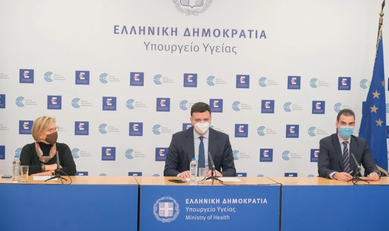 Eνημέρωση διαπ/νων συντακτών από τον Yπ. Yγείας B. Kικίλια, τον ΓΓ ΠΦΥ Μ. Θεμιστοκλέους, την Συντονίστρια Δ/ντρια της 7ης Πνευ/κής Κλινικής στο ΓΝΝΘΑ Σωτηρία και Πρόεδρο του ΚΕΣΥ Μ. Γκάγκα και τον υπεύθυνο για την εφοδιαστική αλυσίδα Ταξίαρχο Α. Περρή