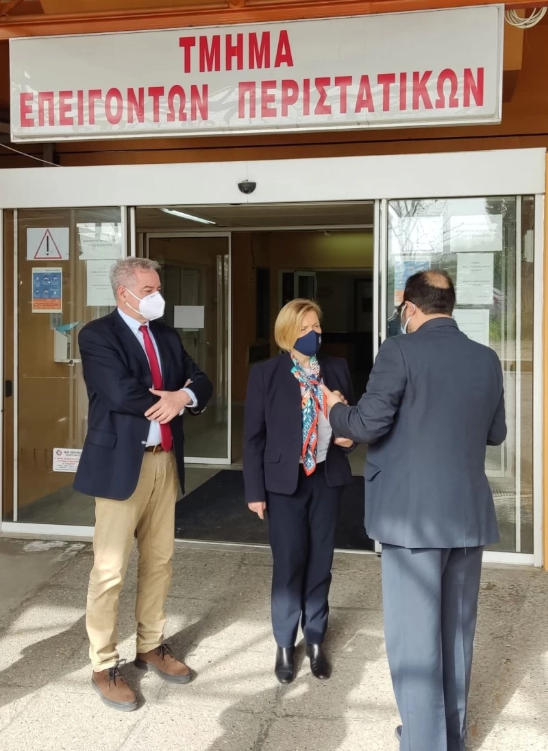Η Αν. Υπουργός συναντήθηκε με τους Διοικητές των νοσοκομείων, τους ιατρούς, τους νοσηλευτές, το υπόλοιπο προσωπικό, καθώς επίσης και με εκπροσώπους των σωματείων των εργαζομένων, και συζήτησε τα θέματα που τους απασχολούν. Περιηγήθηκε σε όλους τους χώρους και τις κλινικές των νοσοκομείων.