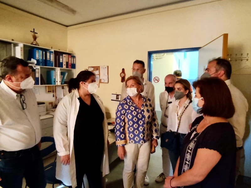 Η Αναπληρώτρια Υπουργός κα Μίνα Γκάγκα επισκέφθηκε το Κέντρο Υγείας όπου και περιηγήθηκε στους χώρους του. Συγκεκριμένα είδε το μικροβιολογικό εργαστήριο, την αίθουσα τηλεϊατρικής, το τμήμα επειγόντων περιστατικών, το ακτινολογικό τμήμα, το καρδιολογικό τμήμα, καθώς επίσης και το Εμβολιαστικό Κέντρο. Ακολούθησε σύσκεψη με τη Διοίκηση και τα στελέχη του Κέντρου Υγείας.