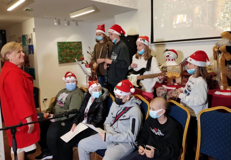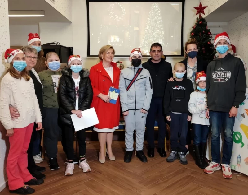 Τα παιδιά της «Φλόγας» τους υποδέχτηκαν με κάλαντα και χριστουγεννιάτικα τραγούδια, ενώ η πρόεδρος του Συλλόγου Μαρία Τρυφωνίδου τους ξενάγησε στο σπίτι όπου φιλοξενούνται παιδιά από όλη την Ελλάδα μαζί με τις οικογένειές τους, για όσο διαρκούν οι θεραπείες τους.
