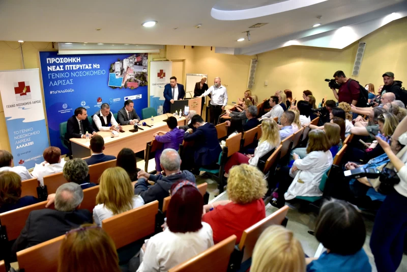 Στη συνέχεια, επισκέφτηκαν το Γενικό Νοσοκομείο Λάρισας, όπου παρουσία του Περιφερειάρχη Θεσσαλίας Δημήτρη Κουρέτα, υπεγράφη η σύμβαση για την προσθήκη της νέας πτέρυγας Ν2 στο νοσοκομείο, στο πλαίσιο του Προγράμματος «Θεσσαλία 2021-2027».