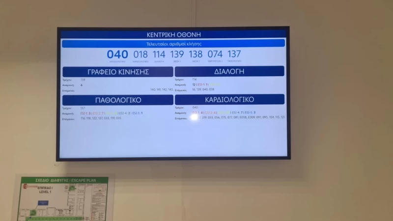 Σε όλη τη διάρκεια, η προβολή του αριθμού του εισιτηρίου γίνεται σε οθόνες που βρίσκονται σε κεντρικά σημεία, όπως στους διαδρόμους, έξω από τα ιατρεία ή στις κεντρικές οθόνες των χώρων αναμονής.