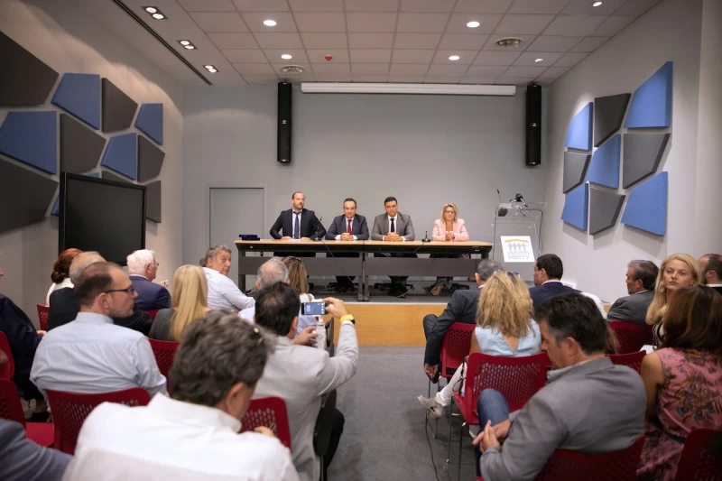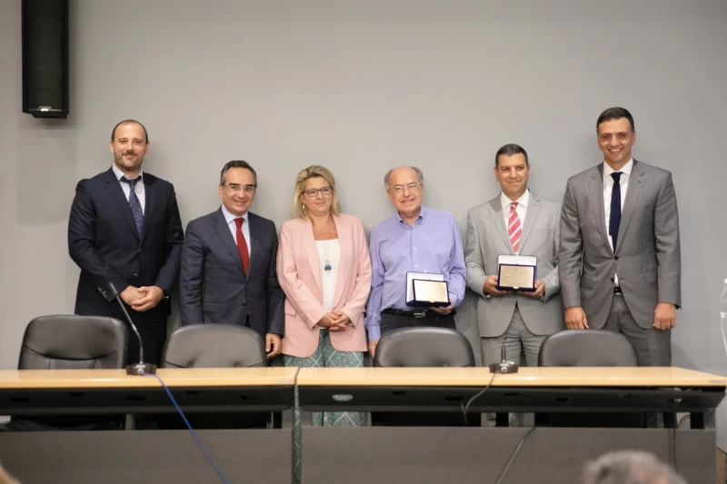 Οι κ.κ. Κικίλιας και Κοντοζαμάνης παρέδωσαν αναμνηστική τιμητική πλακέτα στους εκπροσώπους των δύο ενώσεων των ιδιωτικών κλινικών.
