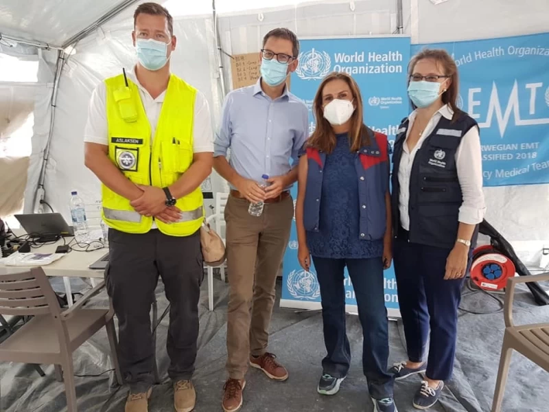 Η Υφυπουργός Υγείας διαπίστωσε την επιχειρησιακή ετοιμότητα του ΕΟΔΥ και της ομάδας των Νορβηγών γιατρών και νοσοκόμων που επιστράτευσε η Ελληνική Κυβέρνηση σε συνεργασία με τον ΠΟΥ για την αντιμετώπιση της προσωρινής εγκατάστασης των προσφύγων και των μεταναστών μετά την καταστροφή της Μόριας.