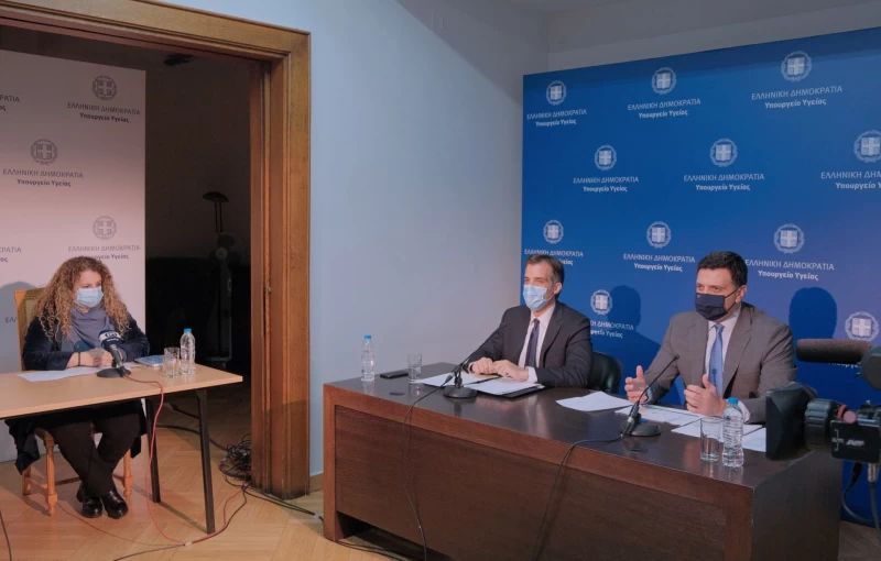 Eνημέρωση διαπιστευμένων συντακτών Υπουργείου Υγείας από τον Υπουργό Υγείας Βασίλη Κικίλια, τoν Πρόεδρο του ΕΟΔΥ Παναγιώτη Αρκουμανέα και τη Διευθύντρια Επιδημιολογικής Επιτήρησης του ΕΟΔΥ Φλώρα Κοντοπίδου