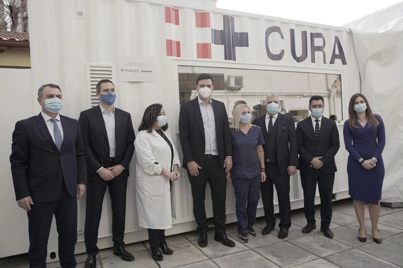 Στη συνέχεια, ο κ. Κικίλιας επισκέφθηκε το Γενικό Νοσοκομείο «Γ. Γεννηματάς», όπου εγκαταστάθηκαν δύο πλήρως εξοπλισμένες φορητές ΜΕΘ, από τις συνολικά έξι που δώρισε στο Εθνικό Σύστημα Υγείας η εταιρεία Kaizen Gaming International και η Stoiximan.