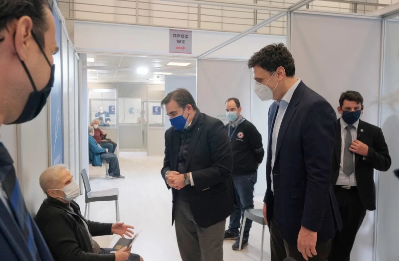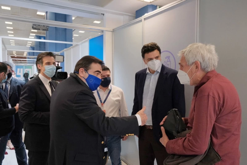 Επίσκεψη του Υπουργού Υγείας Β. Κικίλια μαζί με τον Αντιπρόεδρο της ΕΕ Μ. Σχοινά στο mega εμβολιαστικό κέντρο «Προμηθέας»