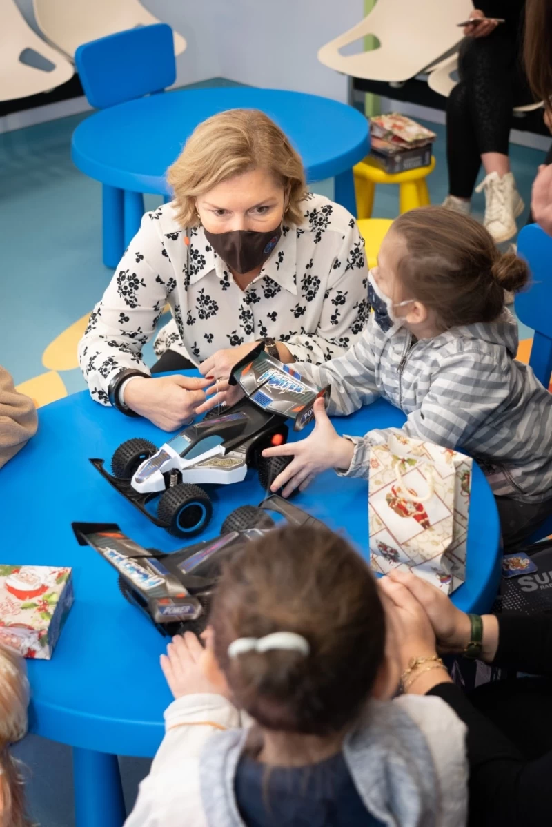 Η Αναπληρώτρια Υπουργός Υγείας και η Υφυπουργός Εργασίας και Κοινωνικών Υποθέσεων έδωσαν γλυκά και δώρα στα παιδιά αυτά, τα οποία δεν έκρυψαν τη χαρά τους.